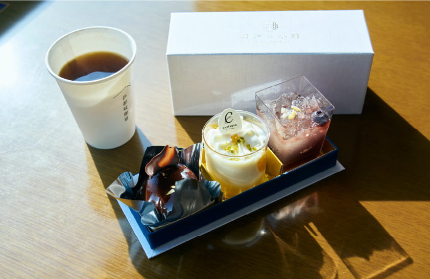 移りゆく風景とともに、味わいの重なりを楽しむことで、「瀬戸の小箱~洋~」は単なるスイーツではなく、etSETOraの旅の時間に寄り添う存在として完成する。贅沢なひとときを、静かに演出するひと箱だ。