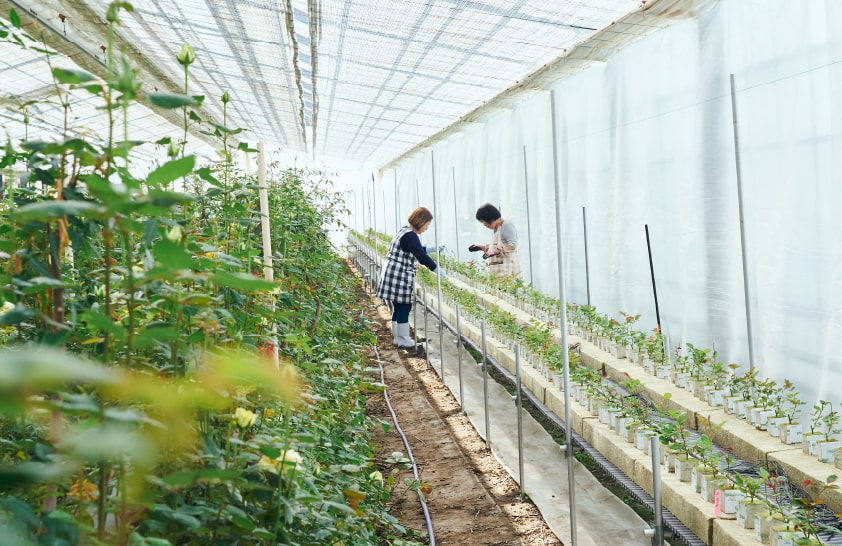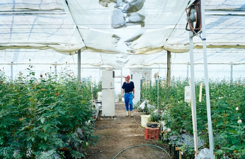 毎日繰り返されるバラの生産作業。その中で西本さんは、「バラの様子を注意深く観察し、やるべき時にやるべきことをやる」ことを大切にしているそう。水が少ないなら足す、肥料が足りないなら与える、病気にかかりそうなら対処するなど、必要な時に必要な作業をすることが何より大切。そして、今何が必要なのかを判断するためには、日ごろからバラの様子を観察し、ちょっとした変化にも気づけるようにしておかなければならないという。
