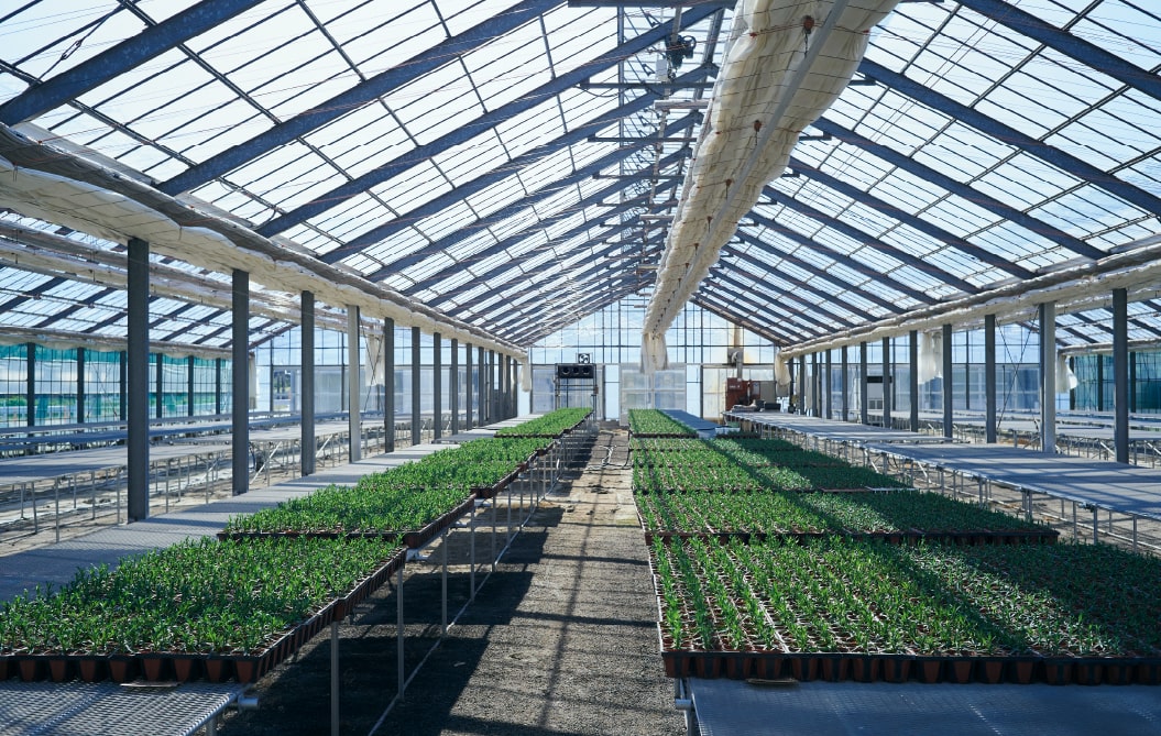 山口県柳井市にある約3700坪の農園で、バラ、カーネーション、胡蝶蘭を生産する株式会社ホシファーム。主力であるバラは12品種を基本とし、年間約30万本を生産しています。生産したバラは主に市場へ出荷。また自社で、ブーケやお菓子とのセットアップギフトなどへ加工し、実店舗「ギャラリー&ギフト アド」や自社ECサイト、JR西日本の産直オンラインショップ「DISCOVER WEST mall」などで、消費者に直接販売もしています。