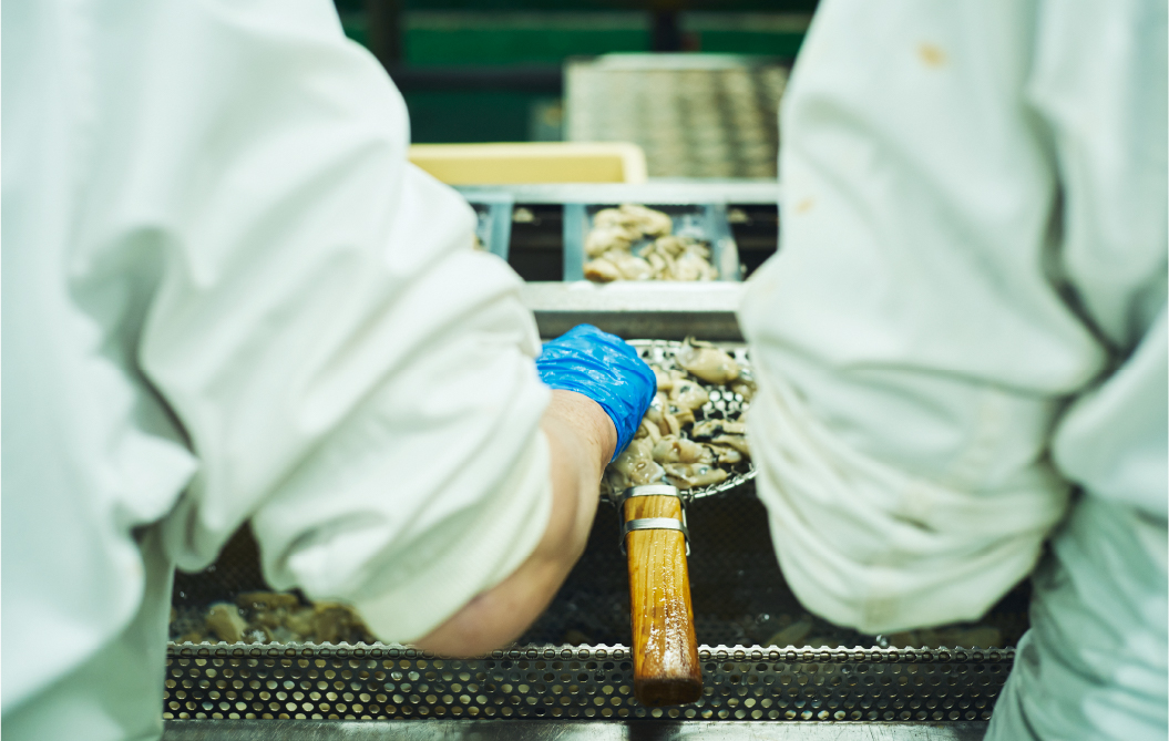 そして1997(平成9)年には、冷凍食品工場も竣工。最新設備を有する工場で、養殖した牡蠣を冷凍フライへと加工するようになった。種牡蠣から最終商品まで、一貫生産するようになったのだ。一貫生産を始めるきっかけとなったのも、周囲からの要望だった。取引先のスーパーから、一貫生産で冷凍フライまで作ってほしいと声が掛かったのだ。