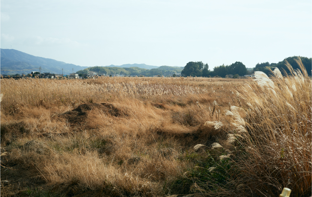 背景の耕作放棄地は開墾予定の地