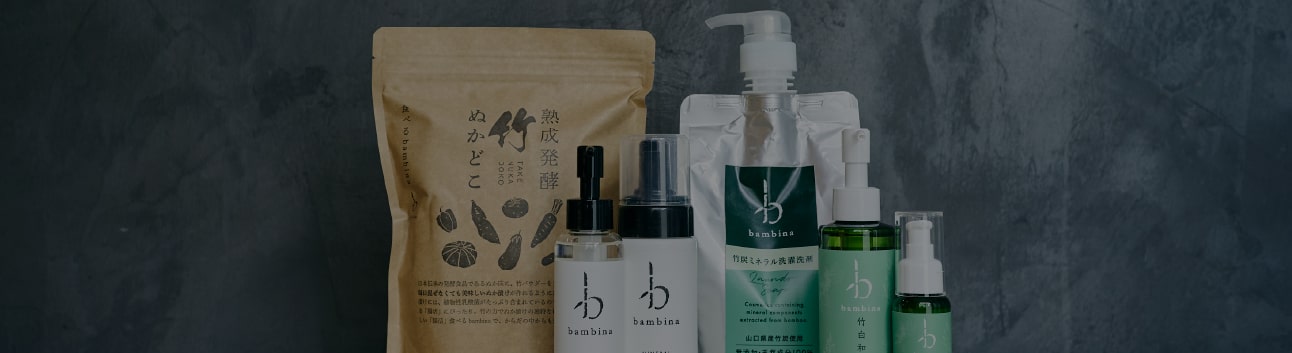 地域課題である竹の有効利用に目を向けながら、スキンケアやランドリー、フードといったジャンルで商品を展開する「ミネラリスト」。山口県宇部市に本社を置き、健康的な肌づくりと環境保全の両立をめざすサステナブルなスキンケアブランド「bambina(バンビーナ)」を展開しています。bambinaの製品には、山口県産の孟宗竹を炭化・抽出したミネラル成分「竹炭ミネラル」が配合されています。植物由来のこのミネラルは、生体との親和性が高いとされており、日々のケアに取り入れている方も多いようです。