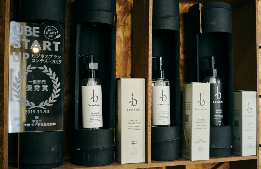 当初は販路の拡大まで想定していなかったと語る永茂さん。製品が形になった時点で、ひとつの節目を迎えたように感じていたという。しかし、反響の広がりとともに取扱店舗は増加。現在では空港に加え、山口県内の道の駅や都市部のセレクトショップでもミネラリストのアイテムを取り扱っている。また、自社オンラインストアやDISCOVER WEST mallでもbambinaのスキンケアシリーズの購入が可能だ。