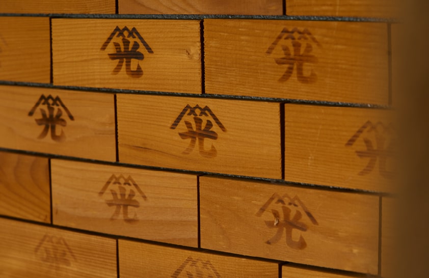 藤光海風堂本店の壁面は、蒲鉾の板でできている