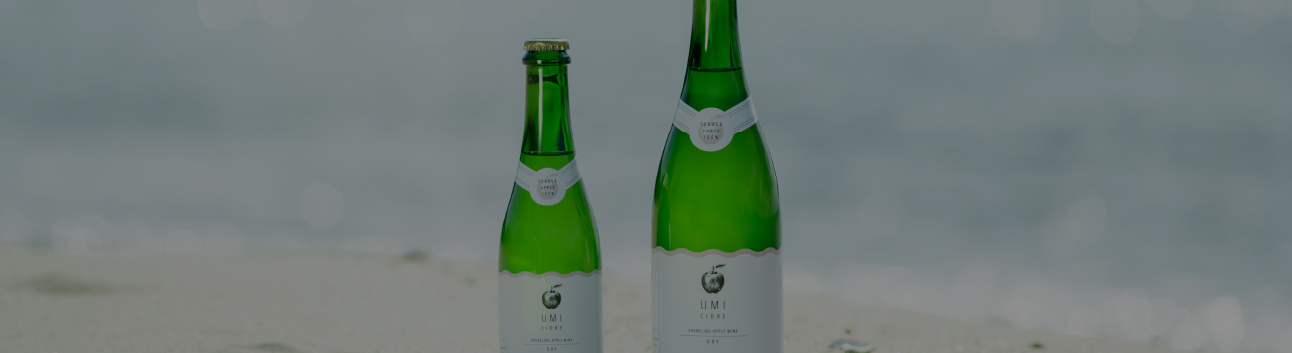 瀬戸内海を背景にUMIシードルとYAMAシードル
