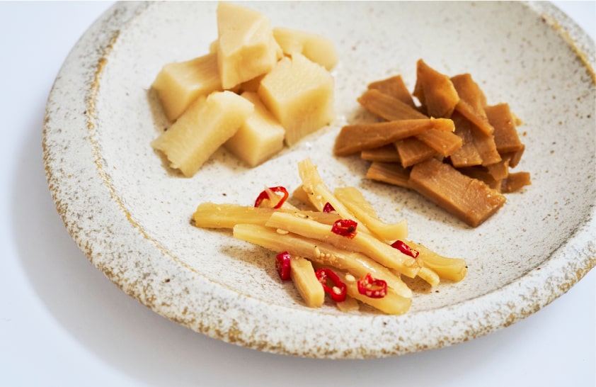 根元を生かした三つのおつまみが