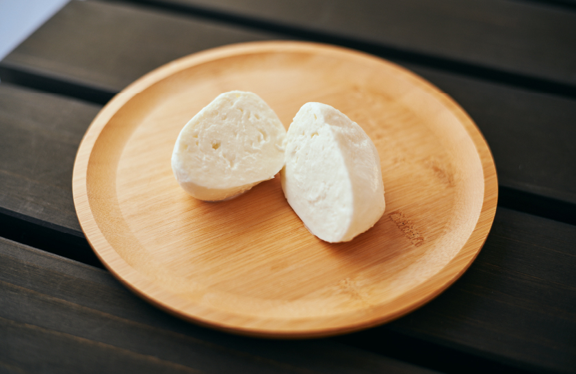 熟成させないフレッシュタイプの「モッツァレラ」。コシがあり、噛むとミルクの風味が口いっぱいに広がる。トマトと合わせたカプレーゼにして食べるのが定番だが、意外にも醤油や味噌との相性も良く、和食に合わせても美味しい。また加熱すると伸びるという特徴もあり、ピザやグラタンに乗せて焼けば、とろりとした食感が楽しめる。