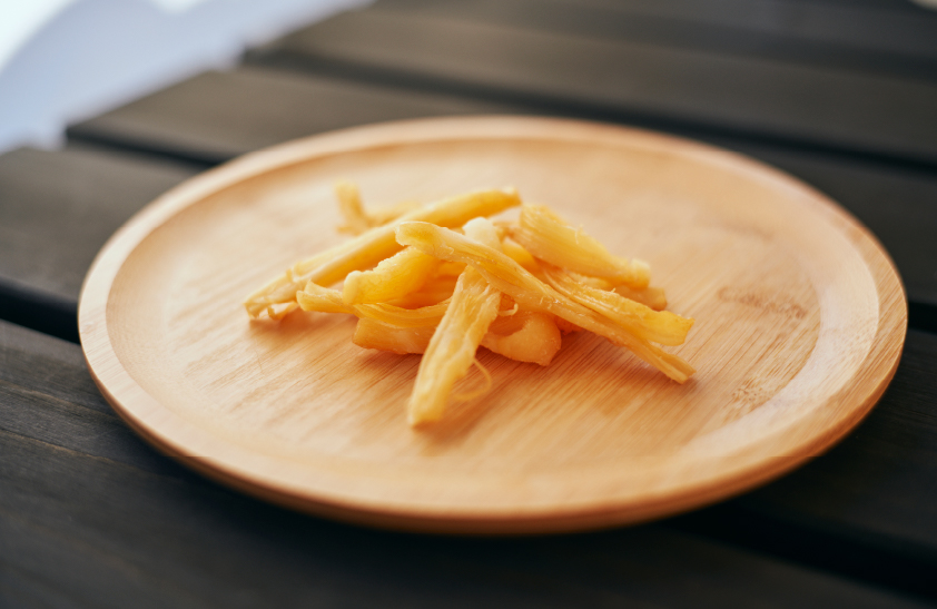 スティック状で噛めば噛むほど味が出てくるので、スルメのように癖になって次から次へと手を伸ばしたくなる。「一袋50グラムの食べ切りサイズにしているのも特徴です」と積賀さん。ちょっとした晩酌のお供にもぴったりだ。
