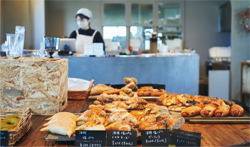 コロナ禍の影響によってさまざまな事象が停滞し、インバウンド需要も落ち込んだ時期。光浦醸造工業 株式会社の代表取締役であり8代目として醸造所を切り盛りする光浦健太郎さんは「自分たちで商品を販売して地元の人に足を運んでもらえることを始めよう」と思い至った。そこで着手したのがオリジナリティのあるパン作りだったという。味噌もパンも同じ発酵食品という視点から、自家製酵母によるパン作りを開始。イースト(パン酵母)ではなく酒種酵母を使用して、原始的かつ日本らしいパンを作り上げた。