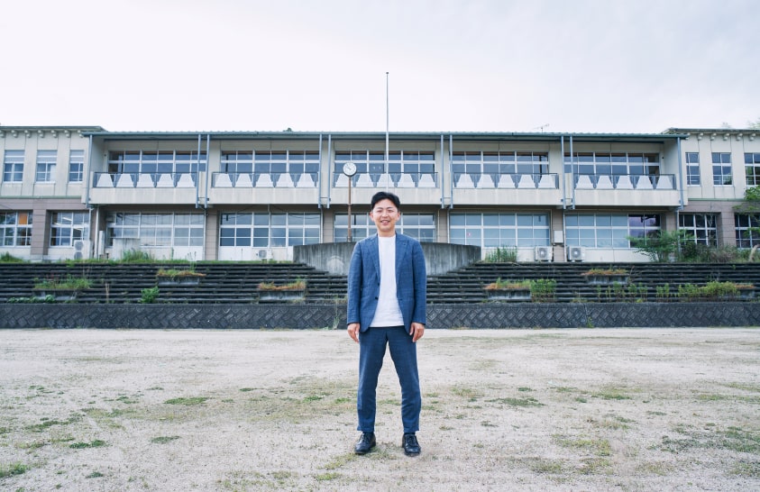 ラボとして利用している旧長穂小グラウンドに立つ藤井さん