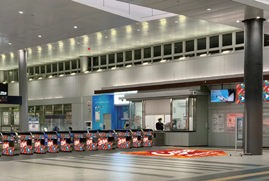 在来線を利用して応援にお越しのファンの皆様に応援機運を高めていただけるよう、中央改札口周辺に・装飾を実施します。(※写真はイメージです)